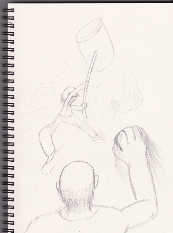 ツイッター側で先行で貼ったモノだが久々に良作な雰囲気が。パース狂ってるのをデジでペン入れ時に直しさえすればきっといい感じになる。