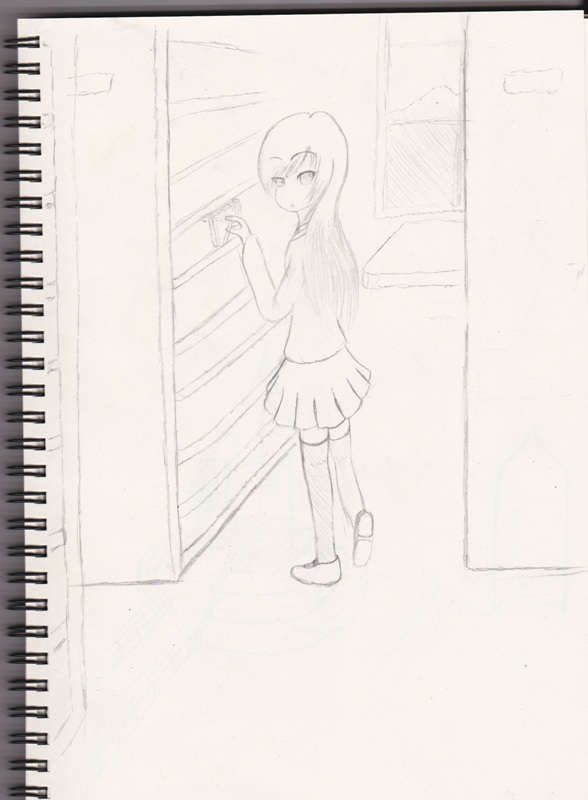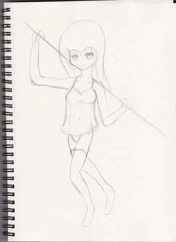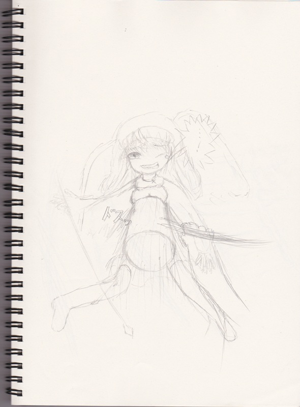 ツイッター側で先行で貼ったモノだが久々に良作な雰囲気が。パース狂ってるのをデジでペン入れ時に直しさえすればきっといい感じになる。